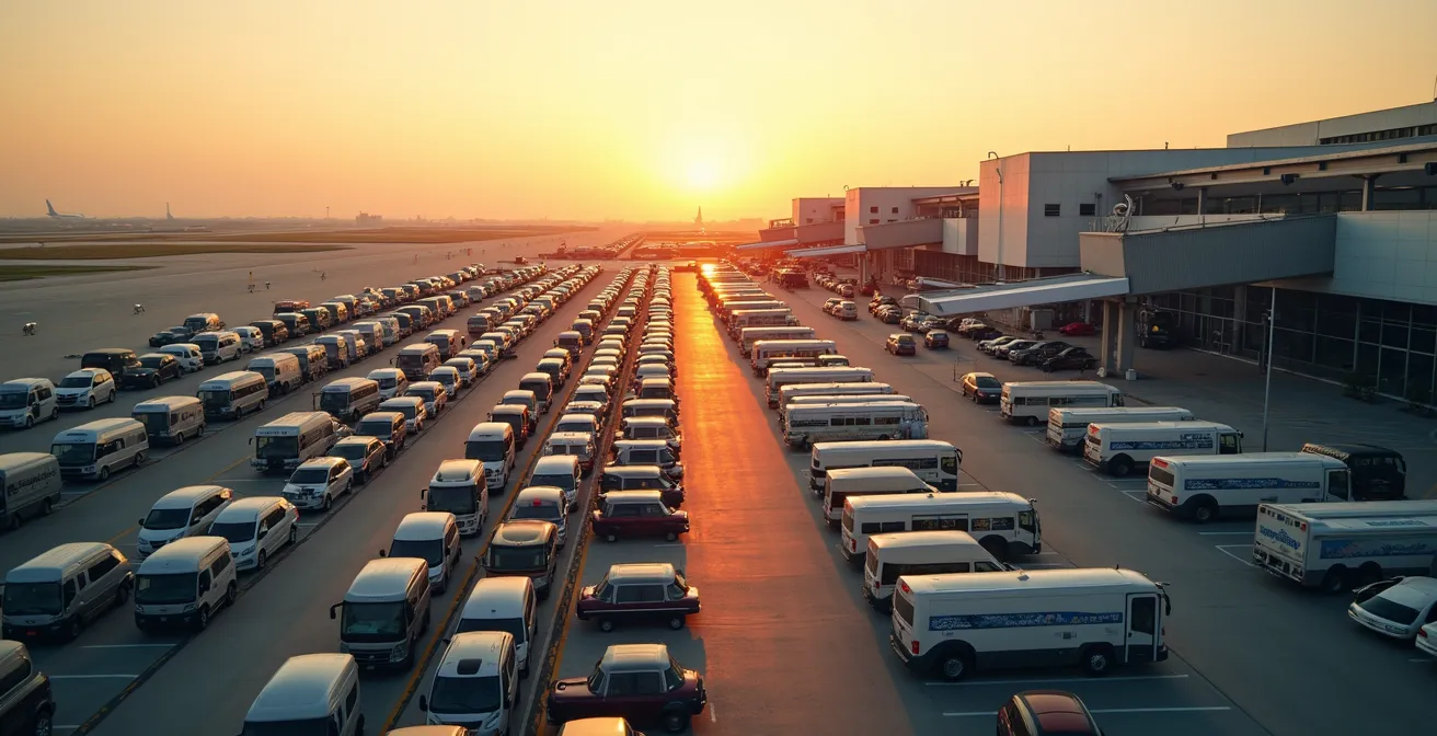 Ces durées moyennes ne suffisent pas. Il faut ajouter le temps d’attente au parking après avoir confié le véhicule. Les navettes fonctionnent généralement toutes les 15 à 20 minutes, mais en période de pointe matinale (6h-9h), la fréquence augmente tandis que le remplissage ralentit l’embarquement. Prévoir systématiquement 10 minutes supplémentaires de buffer pour ce segment.